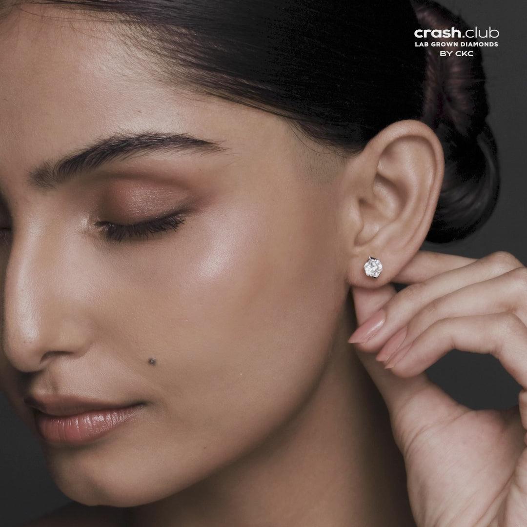 Bold symmetry meets radiant sustainability in these striking stud earrings, each showcasing a mesmerizing hexagonal step-cut lab-grown diamond. Known for its geometric precision and captivating depth, the hexagon cut offers a modern alternative to traditional round studs — ideal for those who value individuality and elegance.