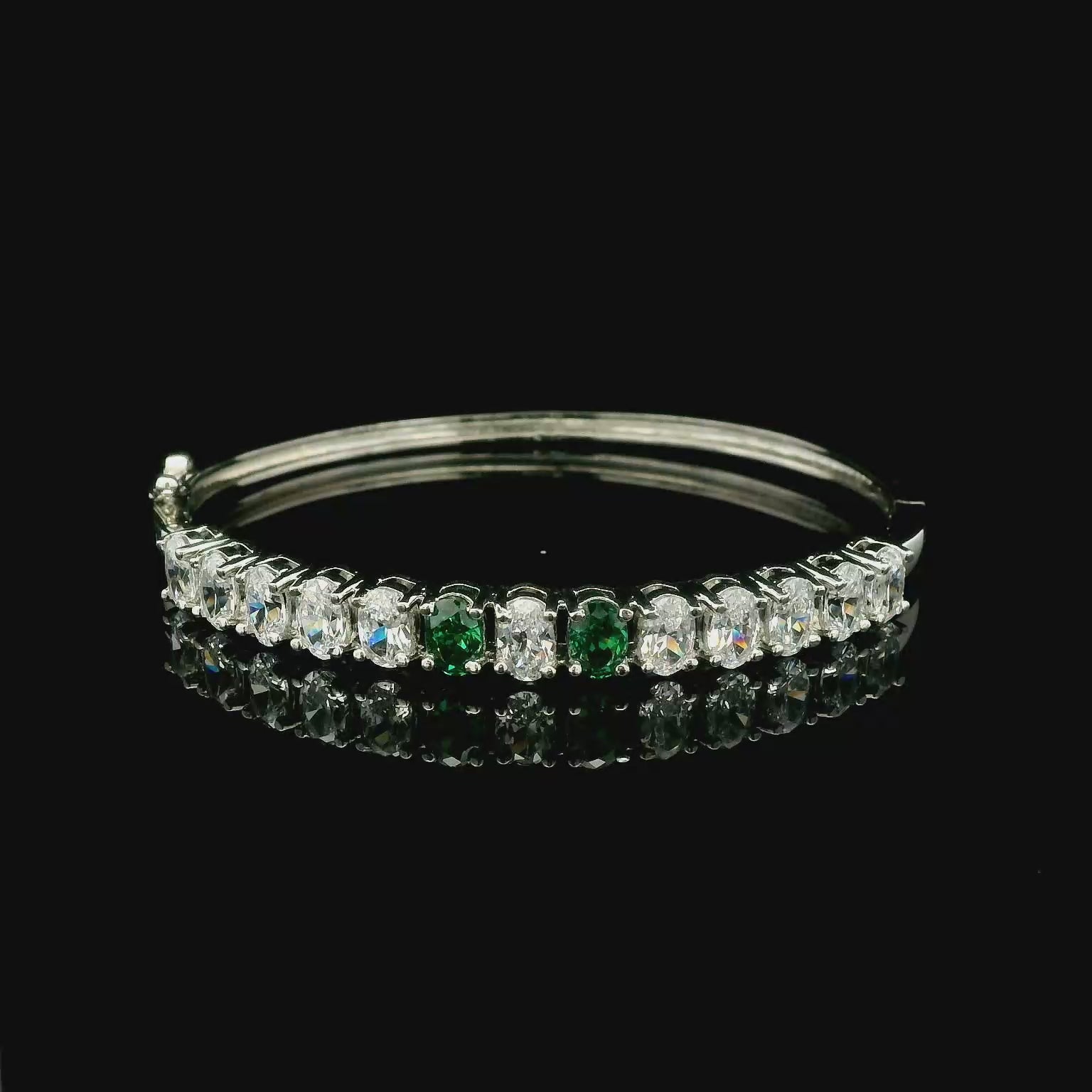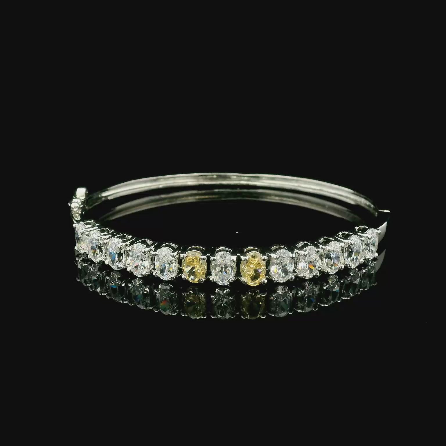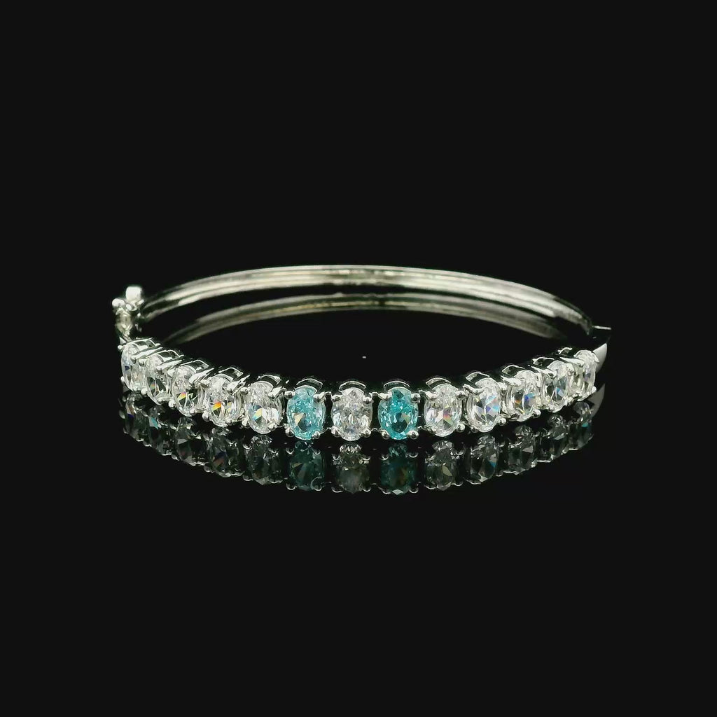 This exquisite bangle is designed in sleek white metal, adorned with alternating sparkling diamonds and striking blue topaz gemstones. The combination of brilliance and subtle color creates a refined yet eye-catching accessory. Perfect for special occasions or daily elegance, this piece adds timeless charm to any wrist.