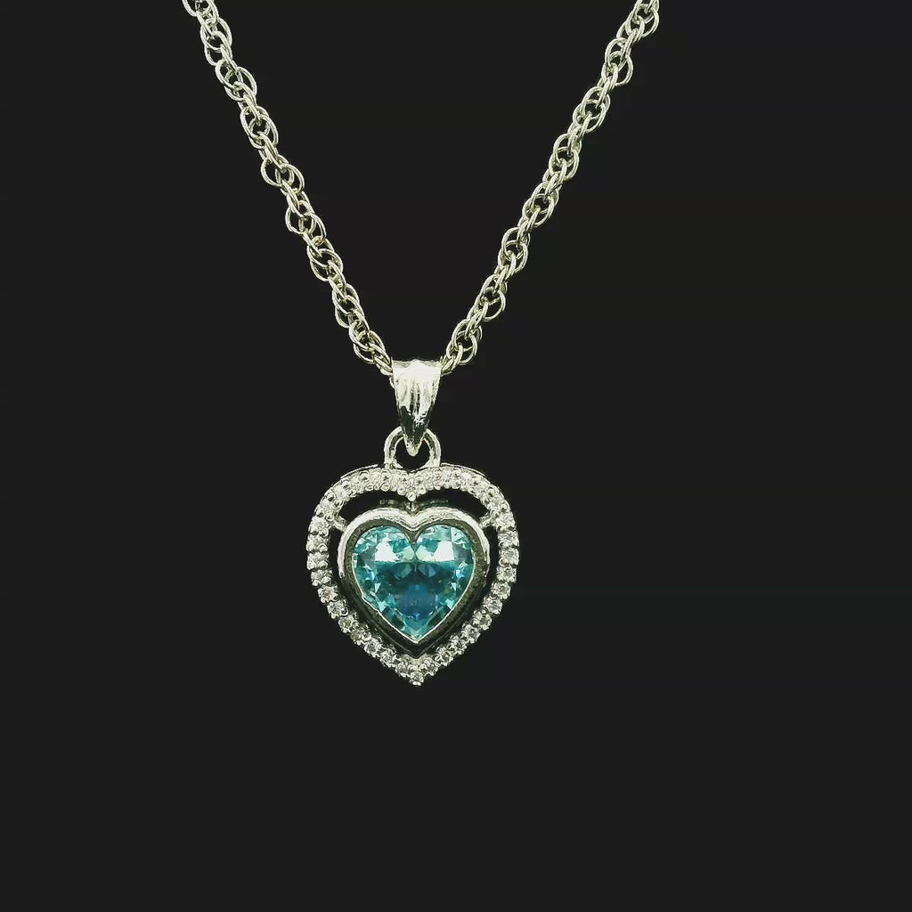 Sterling Silver Sky Blue CZ Double Halo Heart Pendant with Chain