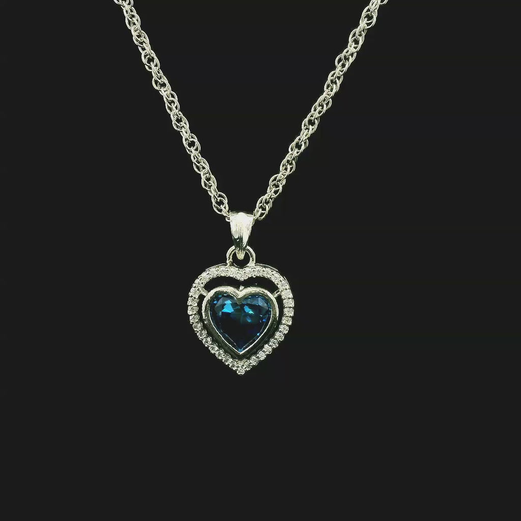 Sterling Silver Blue CZ Double Halo Heart Pendant with Chain