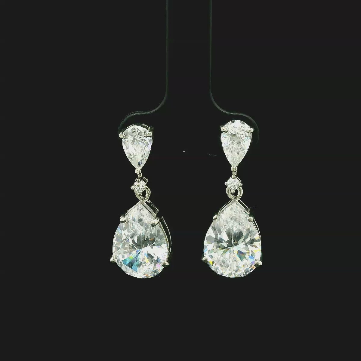 These timeless sterling silver drop earrings feature a brilliant pear-cut cubic zirconia stud, accented with a delicate round stone, leading to a dazzling large teardrop cubic zirconia. The minimal yet elegant design maximises sparkle while offering graceful movement. Perfect for both everyday wear and special occasions, these earrings deliver refined sophistication.