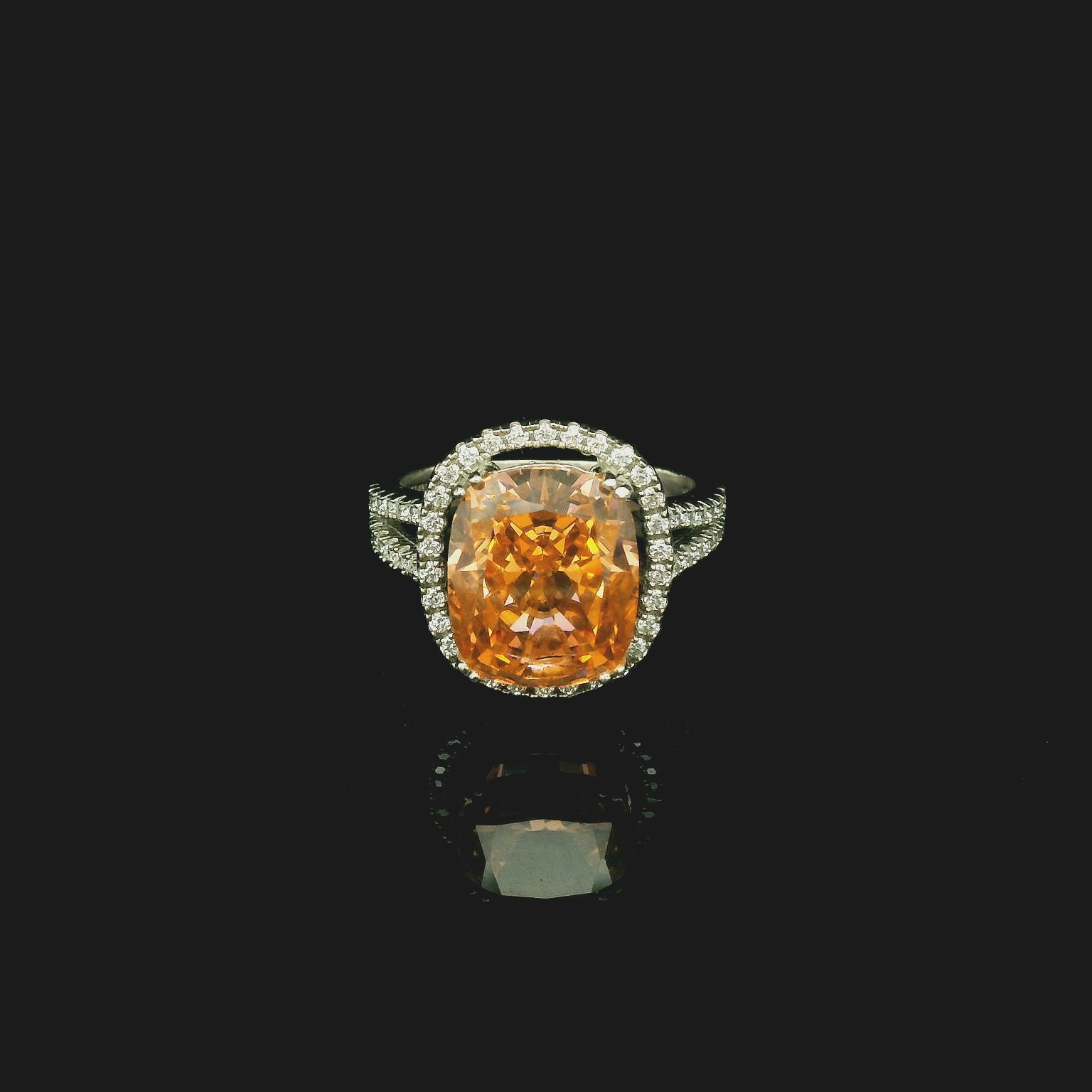 - Centre Stone: Cushion-cut peach cubic zirconia with radiant sparkle