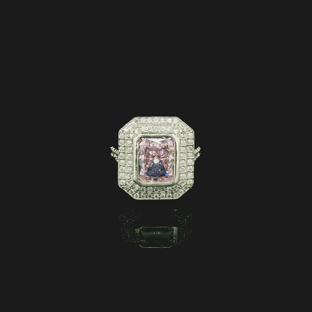 - Centre Stone: Soft pink cubic zirconia with brilliant faceting