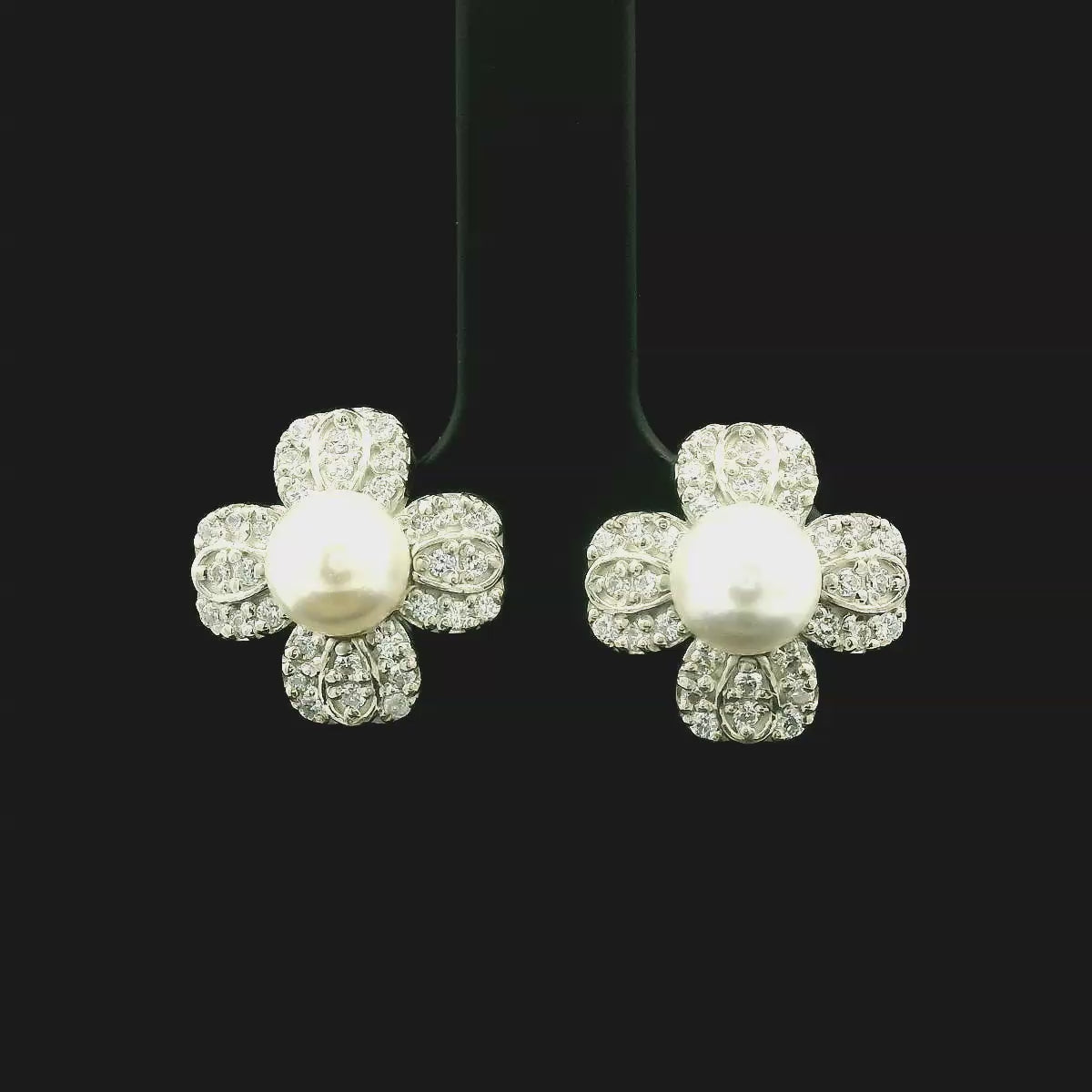 - Design: Floral-inspired stud with a central pearl and CZ-studded petals