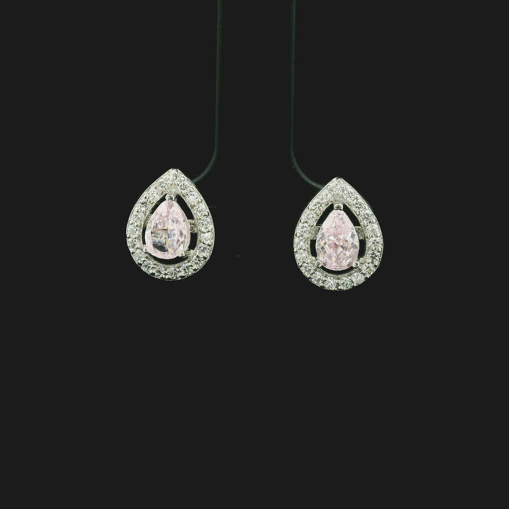 These sterling silver stud earrings showcase a mesmerizing pink pear-cut cubic zirconia surrounded by a radiant halo of clear stones. The teardrop silhouette enhances femininity and sophistication, making them an ideal choice for both daytime charm and evening allure.