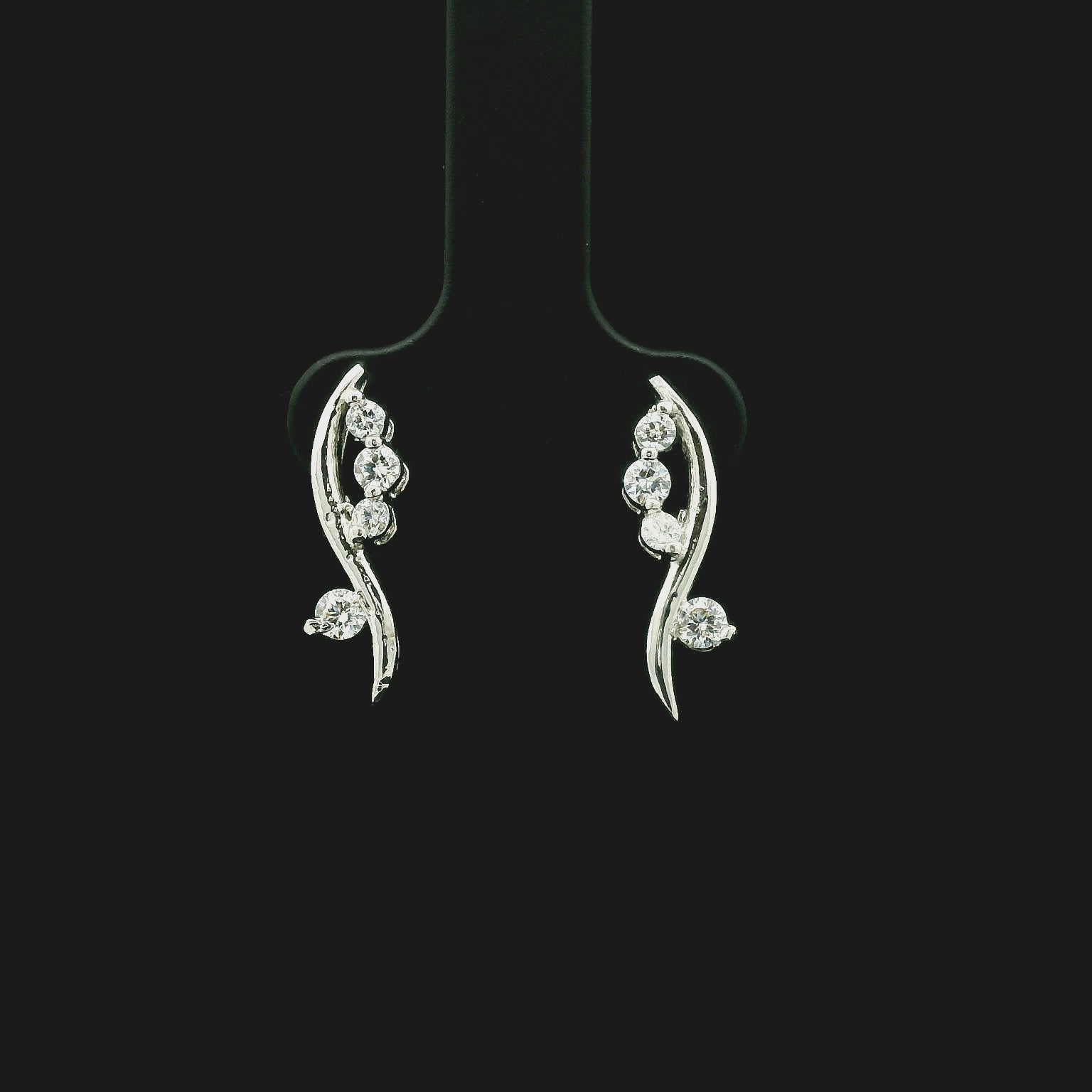 Sterling Silver Curved Trio Cubic Zirconia Stud Earrings