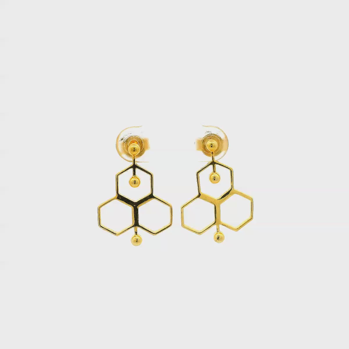 Sterling Silver Gold-Plated Molecular Hexagon Drop Earrings – Science Collection