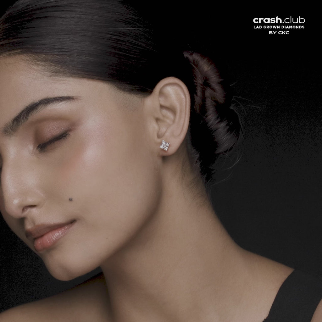 These exquisite gold earrings feature radiant square step-cut lab-grown diamonds set in a classic four-prong gold frame. Combining timeless geometry with ethical craftsmanship, they deliver striking brilliance and sophisticated charm—perfect for elevating both everyday looks and formal ensembles.