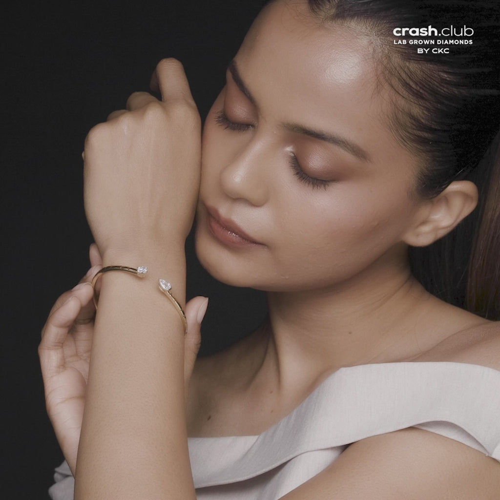 - Open-Ended Bangle Design: A modern, minimal silhouette that wraps the wrist lightly while highlighting the twin diamond tips.