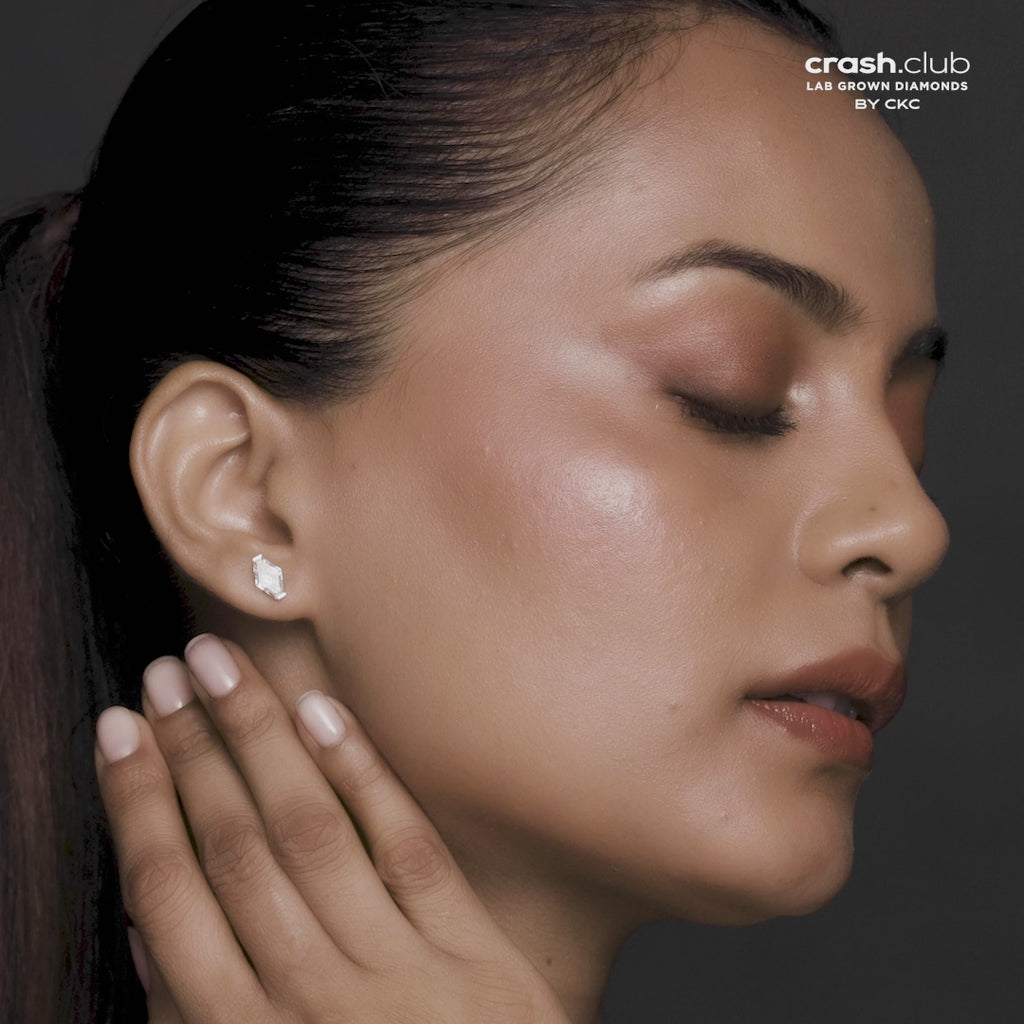 These exquisite white gold tops feature striking lozenge blunt-cut lab-grown diamonds, masterfully crafted to create a balance of sharp geometry and refined elegance. Their angular brilliance catches the light beautifully, making them a sophisticated yet modern addition to any fine jewelry collection.